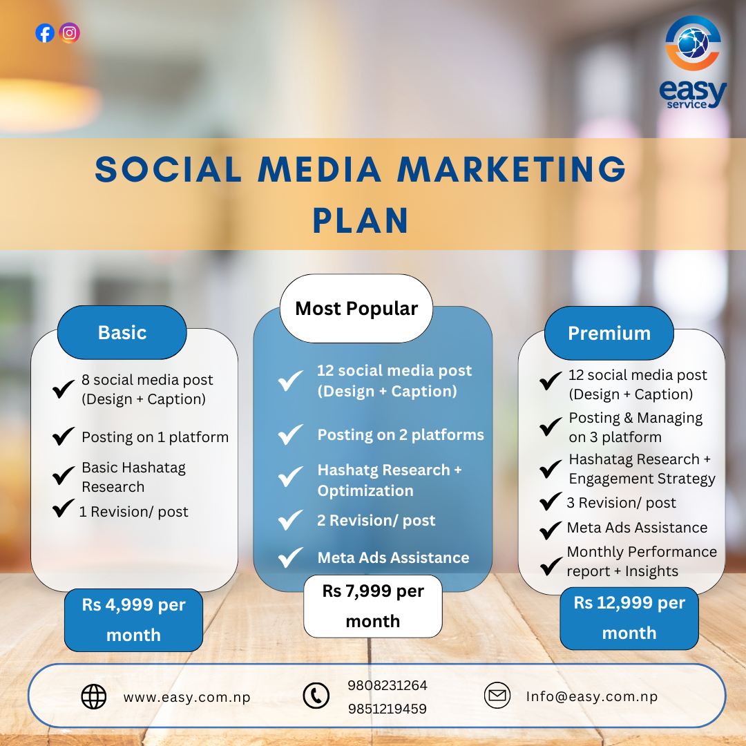 At Easy Service Pvt. Ltd , we offer comprehensive Social Media Management services to help businesses and organizations effectively establish and maintain their presence on popular social media platforms such as Facebook, Twitter, Instagram, LinkedIn, and more. Our expert team will assist you in creating, publishing, and analyzing engaging content, enabling you to connect with your audience, build a strong brand reputation, and drive business growth.
